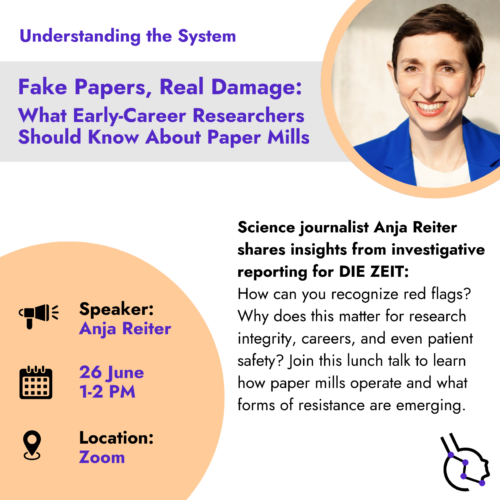 In this lunch talk, science journalist Anja Reiter shares insights from months of investigative reporting for DIE ZEIT. Drawing on conversations with researchers, journal editors, whistleblowers, and publishers, she explains how paper mills operate, why they thrive under today’s publication pressure, and how AI is accelerating both fraud and detection.