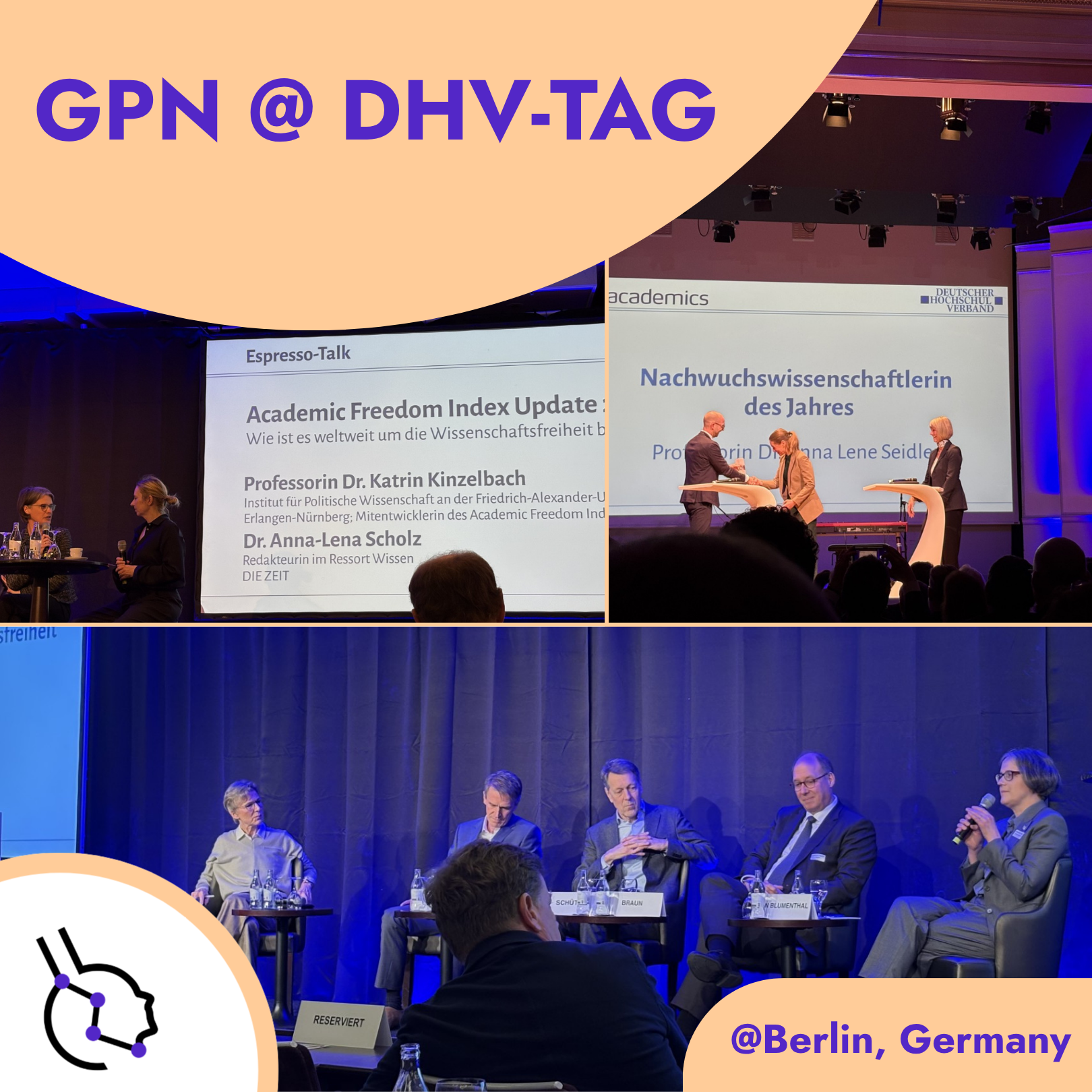 In March 2026, GPN coordinator Melanie Schippling participated in the 76th annual meeting of the Deutscher Hochschulverband (DHV-Tag 2026) in Berlin. The event was held under the theme “Was Wissenschaft bewegt – Freiheit zur Erkenntnis” (“What moves science – Freedom for knowledge”) and offered the opportunity to engage with a remarkable range of perspectives on academic freedom. As an organization representing postdocs, we were particularly inspired by the award for Early Career Researcher of the Year, presented to Professor Dr. Anna Lene Seidler. This recognition highlights not only outstanding research achievements, but also the broader responsibility of early-career scientists to actively shape the future of academia. It sends an important signal: excellence and engagement at early career stages deserve visibility and support.